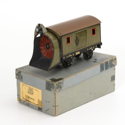Spur 0. Seltene Schneefräse bzw. Schneepflug-Güterwagen mit 2 Schiebetüren. Im Originalkarton