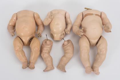 Defekte Puppen und Lederkörper ohne Füllung. Für die Puppenklinik