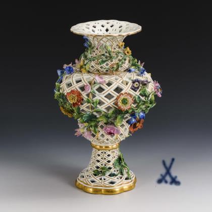 Durchbruchvase mit Blütenbelag. Meissen.