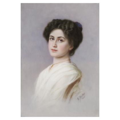 Porzellangemälde: Bildnis einer jungen Frau.