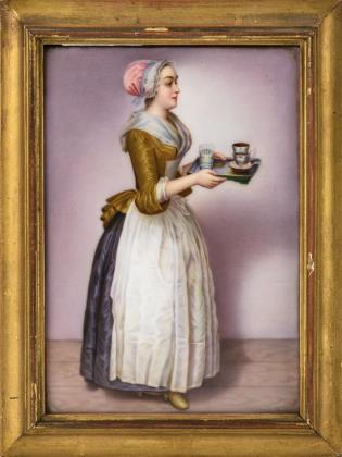 Porzellangemälde: Das Schokoladenmädchen.