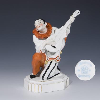 Art-déco-Figur: Pierrot mit Gitarre. Katzhütte, Hertwig & Co.