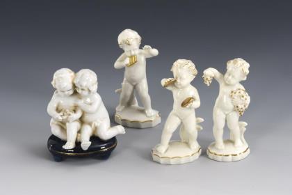 1x E. & A. Müller, um 1900: sitzendes Puttenpaar mit Vogelnest. / 3x Metzler & Ortloff, ab 1935: Putto mit Becken, Putto mit Panflöte und Putto mit Weintrauben