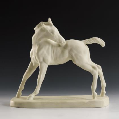Modell von Rudolf Hölbe 1885. Farbig bemalt, gold staffiert. Montierte runde Plinthe. Ritzmarke, Pressmarke, Malermarke, Schwertermarke