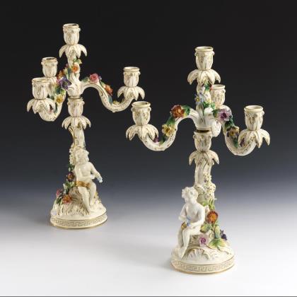 2 Leuchter mit Puttenfigur. Potschappel.