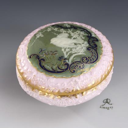 Jugendstil-Dose mit Pâte-sur-Pâte-Dekor. Limoges.