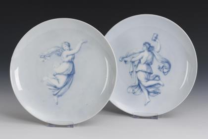 Mit Motiven wohl nach Bertel Thorvaldsen: 1x die Darstellung einer antikischen Figur als Allegorie der Zeit mit Stundenglas und 1x die Darstellung einer antikischen Figur mit erhobenen Händen