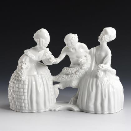 Entwurf von Hanns Pellar (1886–1971) und Albert Caasmann (1886-1968). 2 Rokokodamen mit einem Faun in ihrer Mitte