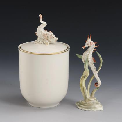 Dose mit Fisch und Seepferdchen. Hutschenreuther.