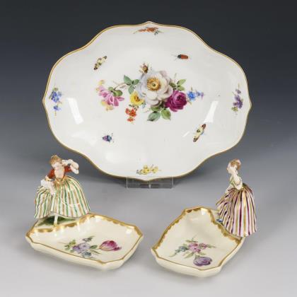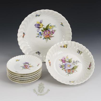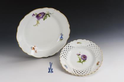 Gemüseteller und Durchbruchteller mit Blumenmalerei. Meissen.