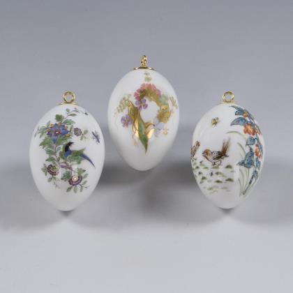 3 Ei-Vasen mit Figuren.