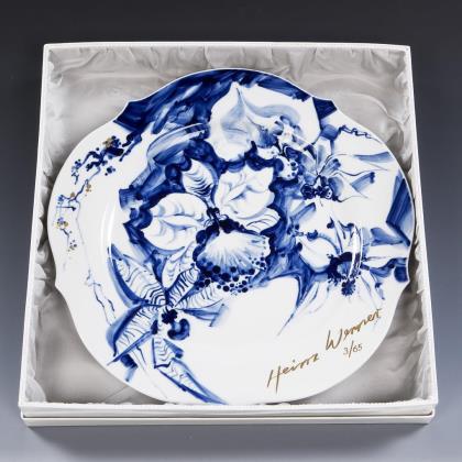 Modell von Ernst August Leuteritz 1861. Kobaltblauer Fond, reliefiert, gold staffiert. Frontal passig geschweifte Goldreserve mit farbig gemaltem Blumenbukett, Goldstaffage. Montierter Standfuß. Pressmarke, Ritzmarke, Schwertermarke mit Punkt