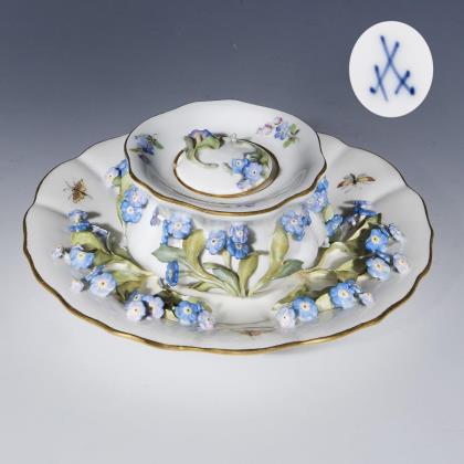 Tintenfass, Présentoir mit plastischen Blütenbelägen. Meissen.