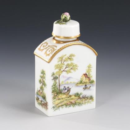 Teedose mit Landschaftsmalerei. Fürstenberg.