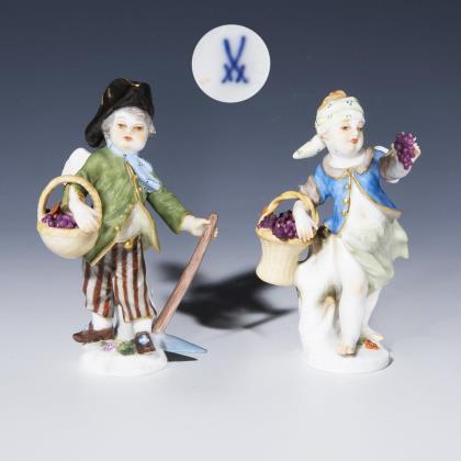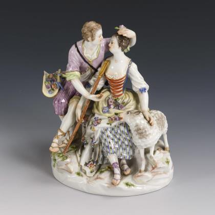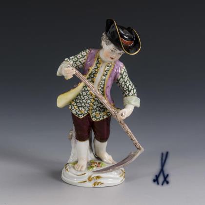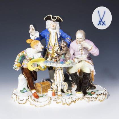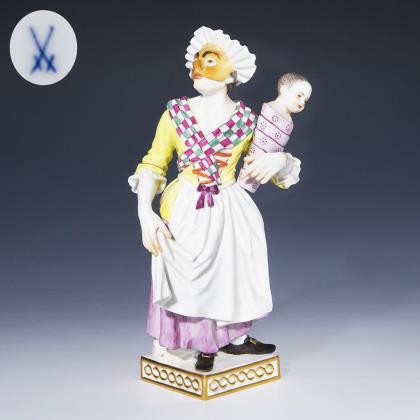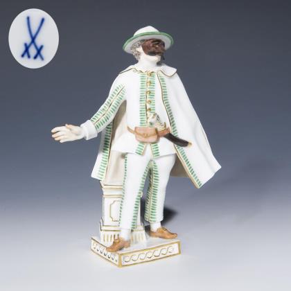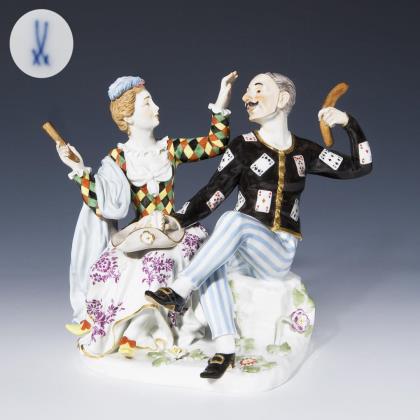 Modell von Peter Strang 1976. Farbig bemalt, gold staffiert. Ritzmarke, Pressmarke, Malermarke, Schwertermarke am Sockel