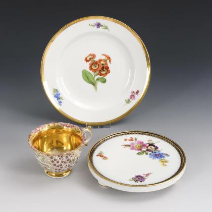Vitrinentasse, Untersetzer, Teller. Meissen.