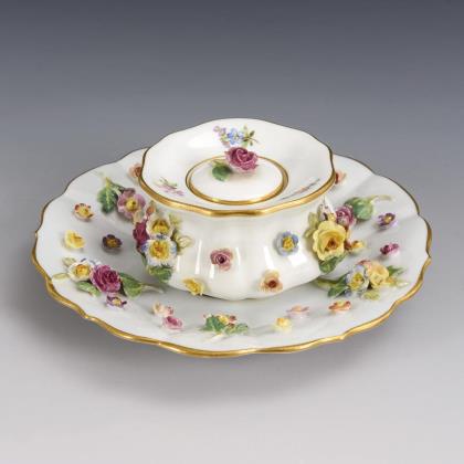 Tintenfass mit Blütenbelag. Meissen.