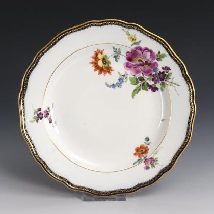 Teller mit Kobaltrand und Blumenmalerei. Meissen.