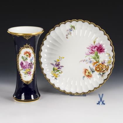 Kobaltvase und Fächerplatte. Meissen.