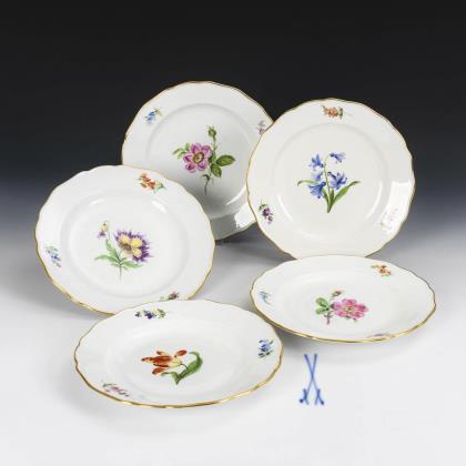 5 Teller mit Blumenmalerei. Meissen.