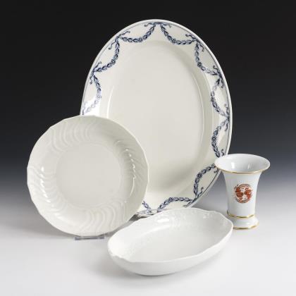 Platte, 2 verschiedene Schalen und Vase