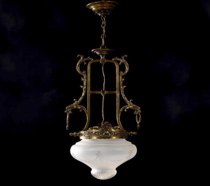 Historismus-Deckenlampe. D.R.P. Auergesellschaft Berlin.