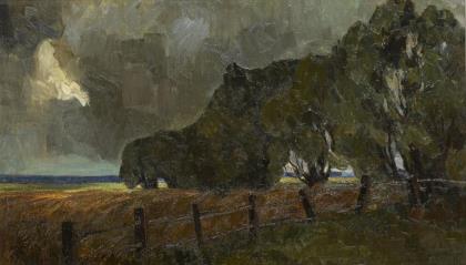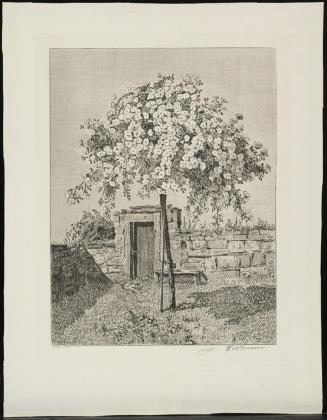 FELDHUSEN, Anna (1867 Bremen - 1951 Bremen). Blühender Apfelbaum vor Mauer.