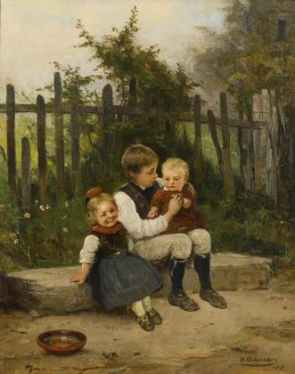 OEHMICHEN, Hugo (1843 Borsdorf - 1932 Düsseldorf). Geschwisterbildnis.