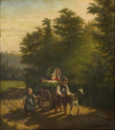PLÄSCHKE, Moritz (1817 Strehlen - Düsseldorf 1888). Kinder mit Ziegenwagen.