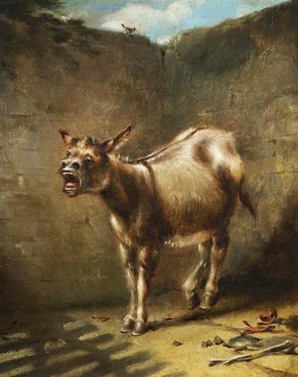 TIERMALER MITTE 19. JAHRHUNDERT. Der Kuckuck und der Esel.