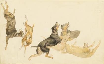LUCAS, August (1803 Darmstadt - 1863 ebd.). Studie Hundemeute.