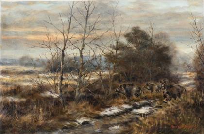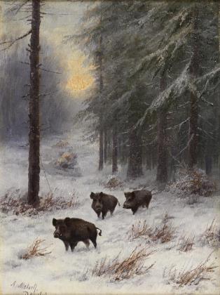 MÖTSCH, August (1869 - 1952 Düsseldorf). Wildschweine im Winter.