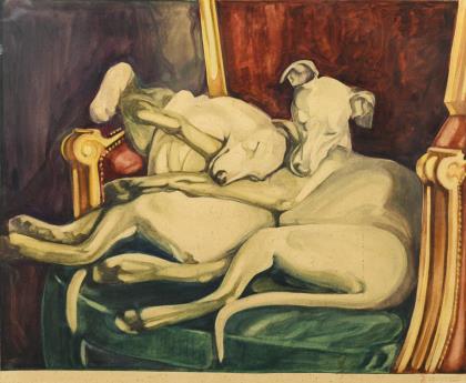 HEIMLICH. Zwei Gemälde mit Jagdhunden.