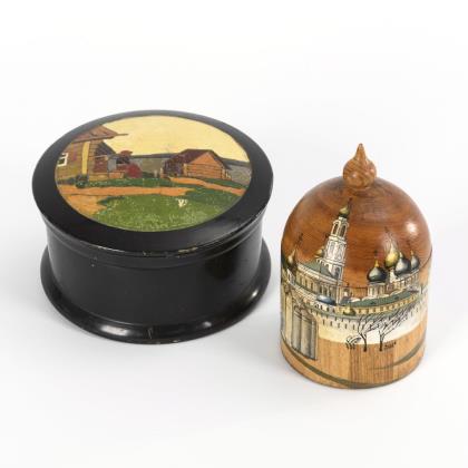 2 russische Holzdosen. Künstlerkolonie Talaschkino.
