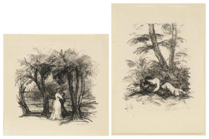 "Lust und Qual", Blatt 35,2 x 25 cm und "Sehnsucht", Blatt 25,3 x 26,5 cm; aus: "Goethe Gedichte. Mit Steinzeichnungen von Hans Meid", Berlin 1925