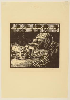 Holzschnitt zur Volksweisheit "Mancher suchet einen Pfennig und verbrinnt darbey drey Lichte"