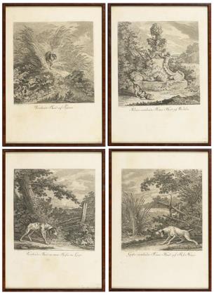RIDINGER, Johann Elias (1698 Ulm - 1767 Augsburg). 4 Werke mit Hunden.