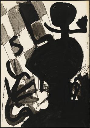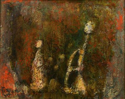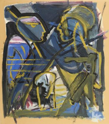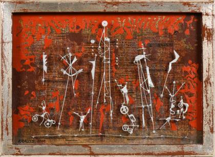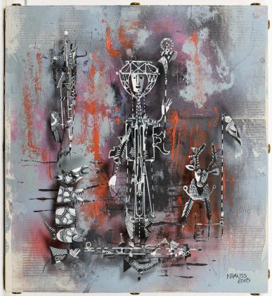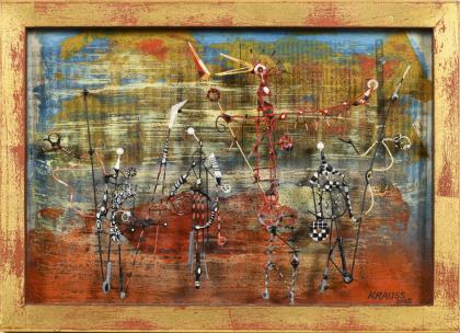 KRAUSS, Gerd (1941 - 2012). Abstrakte Komposition mit schemenhaften Figuren.