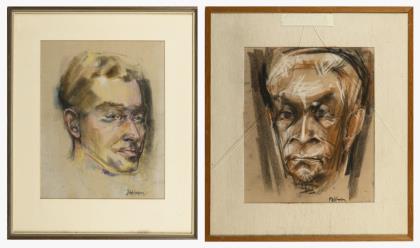 In leicht irisierender Farbgebung gemalte Bildnisse zweier Männer