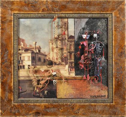 KRAUSS, Gerd (1941 - 2012). Venedig-Kulisse mit Figuren der Commedia del'arte.