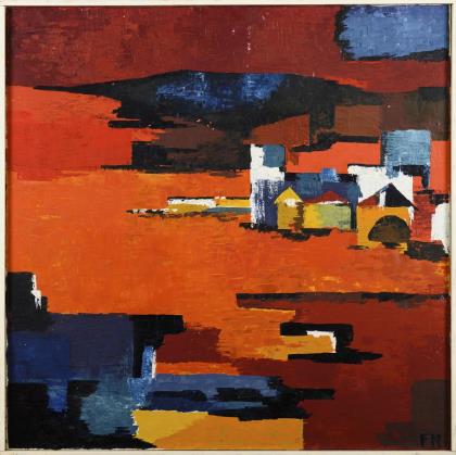KOZMA, István (1937 - 2020). Abstrakte Landschaft mit Rindern.