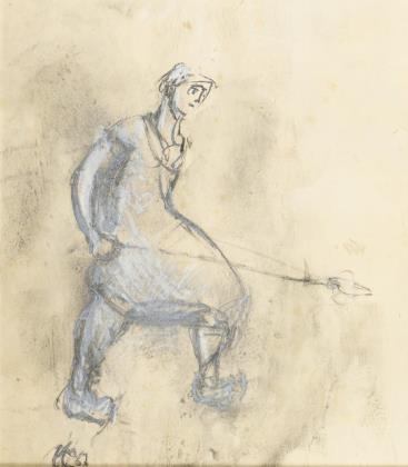 Skizzenhaft ausgeführter Arbeiter mit Schürze und Zange