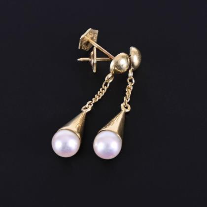Halbkugelige Brisuren mit Kettenabhängungen und gefassten Zuchtperlen. Steckmechaniken