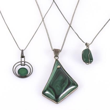 4 Schmuckstücke mit Malachiten.