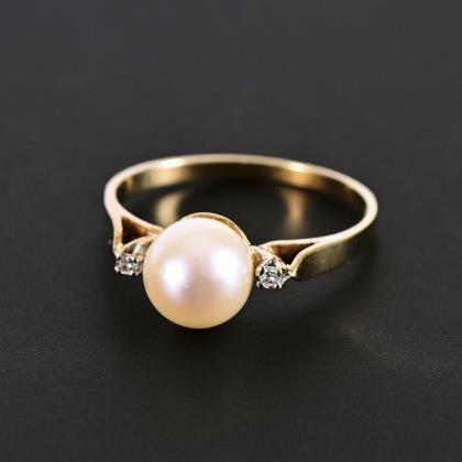 Ring mit Zuchtperle und Diamanten.