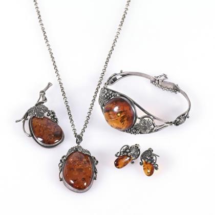 4 Teile Bernsteinschmuck.