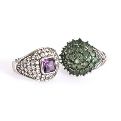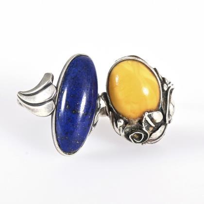 2 Ringe mit Lapislazuli und Bernstein.