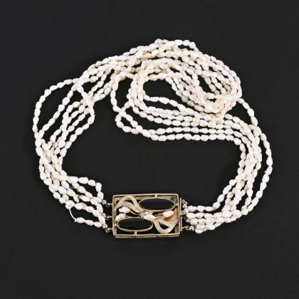 6-reihige Zuchtperlenkette mit Zierschließe.