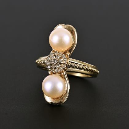 Ring mit Zuchtperlen und Diamanten.