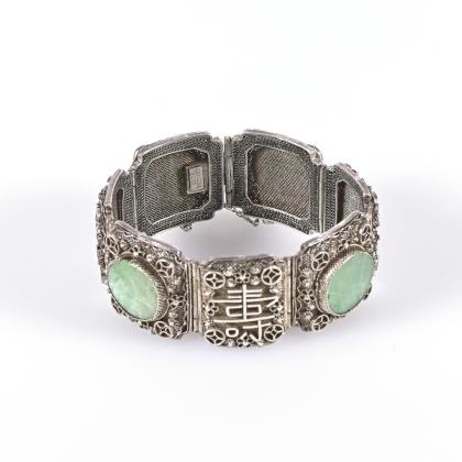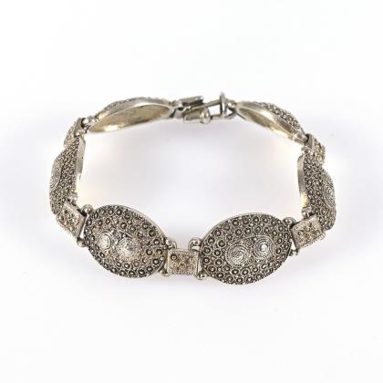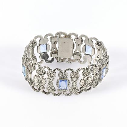 Ornamentgliederband mit Markasitbesatz und 5 zargengefassten Imitationen. Kastenschloss mit Achtersicherung